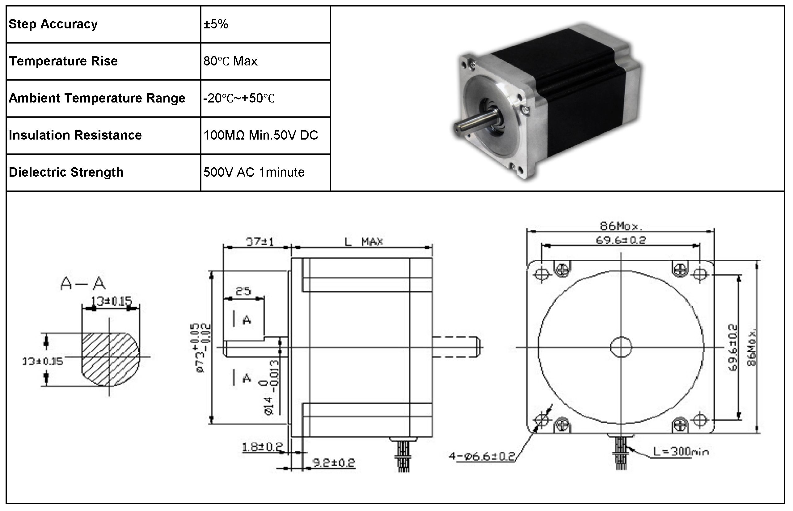 NEMA34 Stepper Motor / 5.6A / 1090oz-in or 7.7Nm High Torque